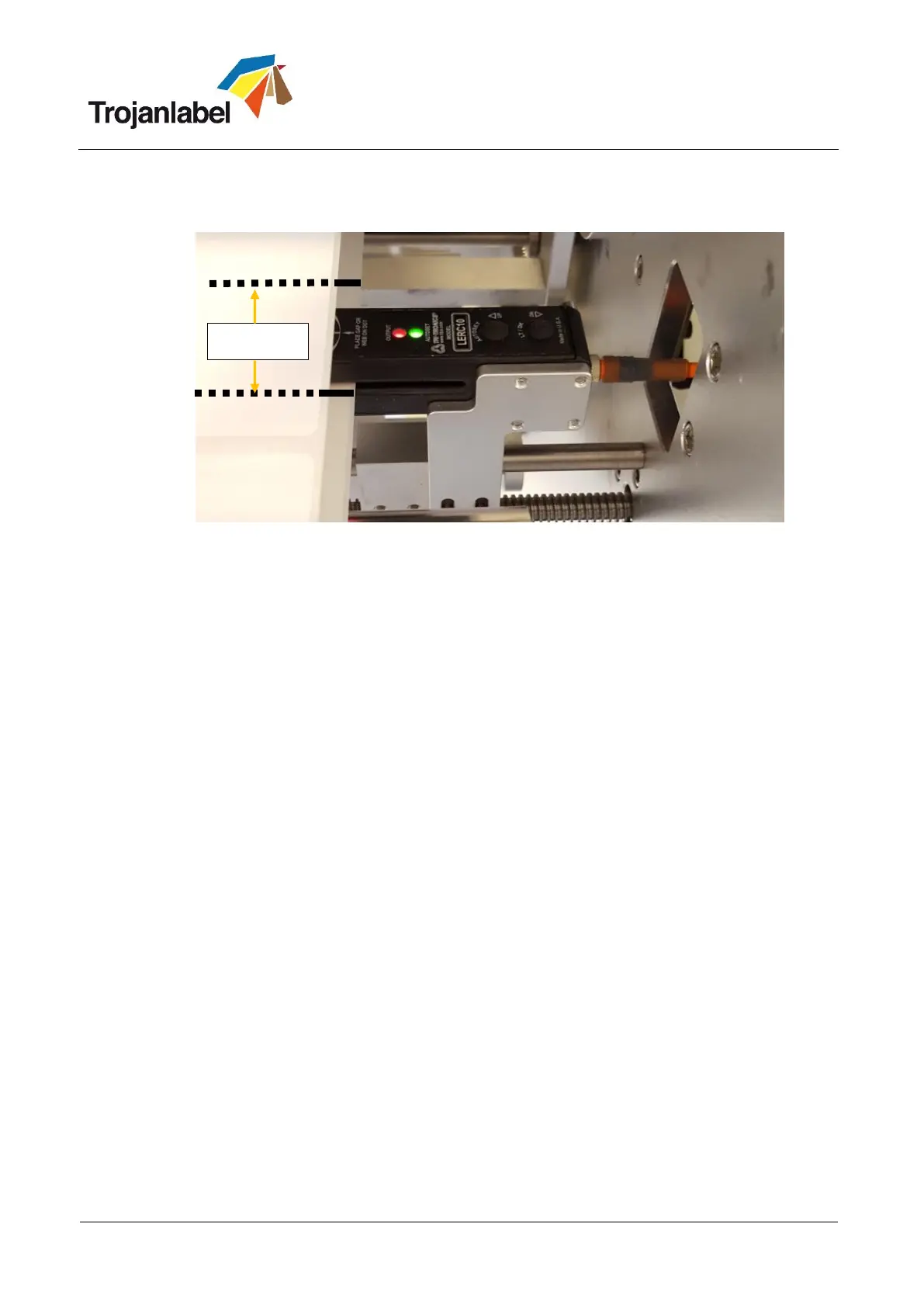When moving a label (not blackmark) into the sensor beam the red LED will go on indicating that