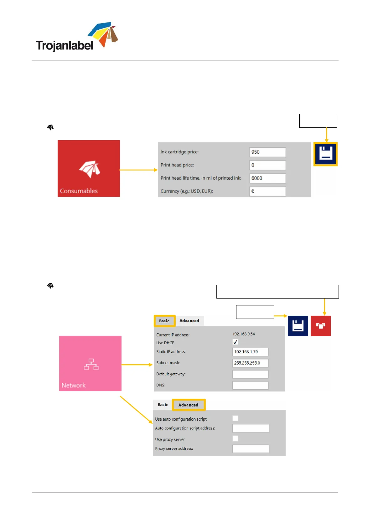 Ink cartridge price is the base of ink cost/label calculation in statistics menu (see section 13.2.3).