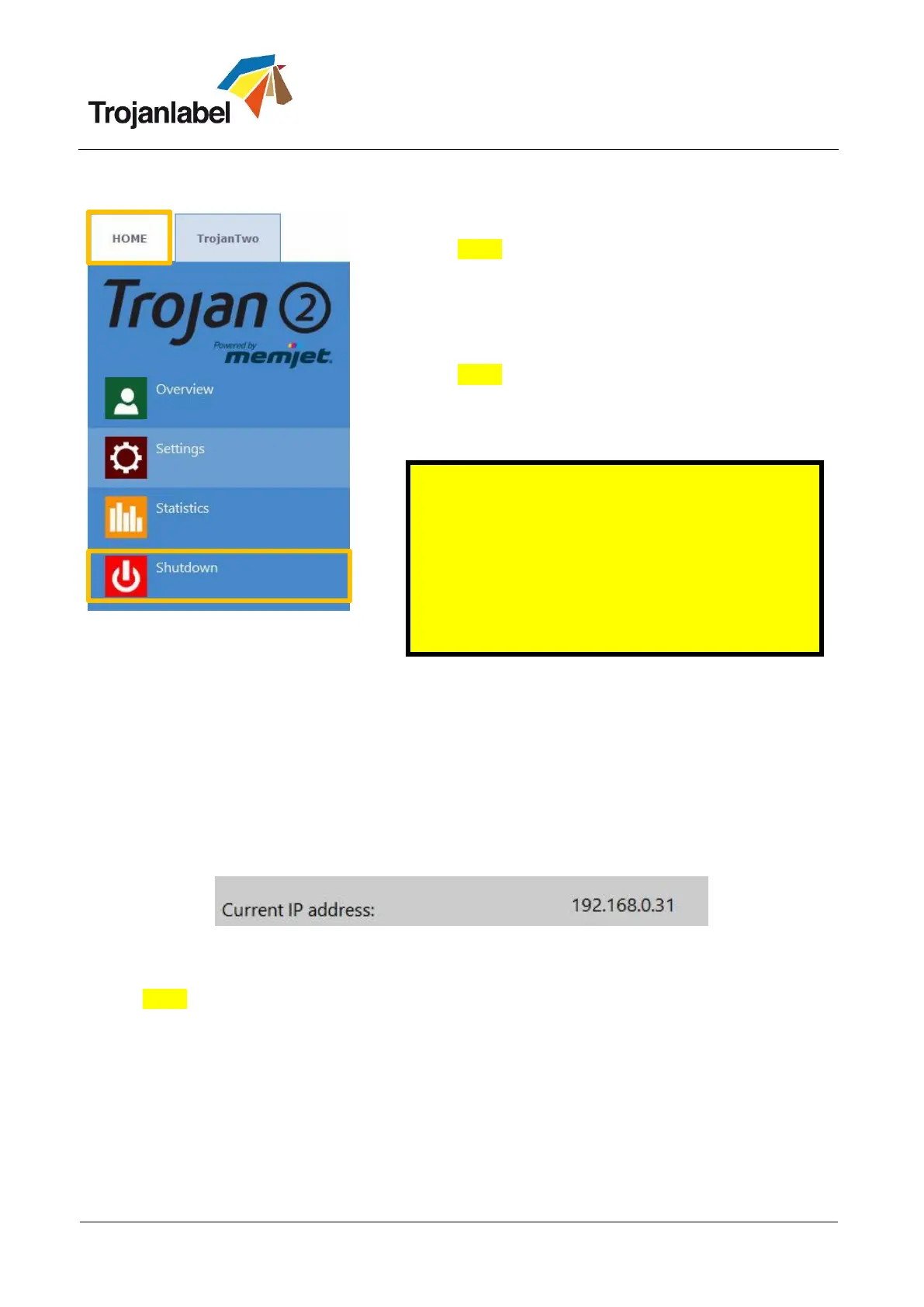 Actual IP address of the TrojanTwo press can be set or acquired at HOME -> Settings -> Network