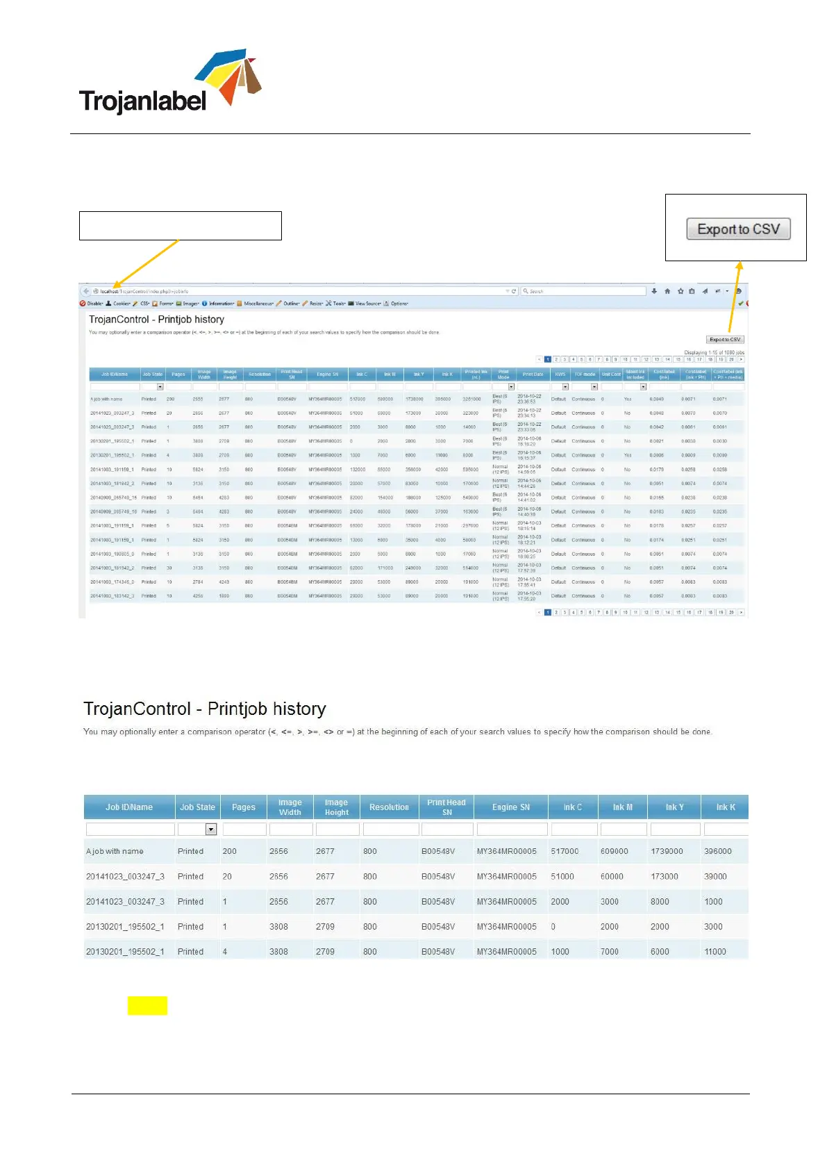 Press ‘Export to CSV’ button on page to save the statistics into a CSV file.