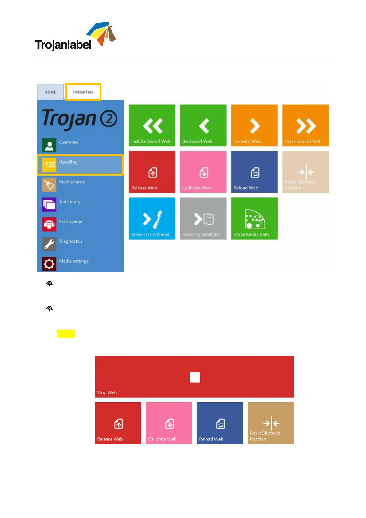 NOTE: When either of the web moving buttons used in the top row the screen switches to Stop