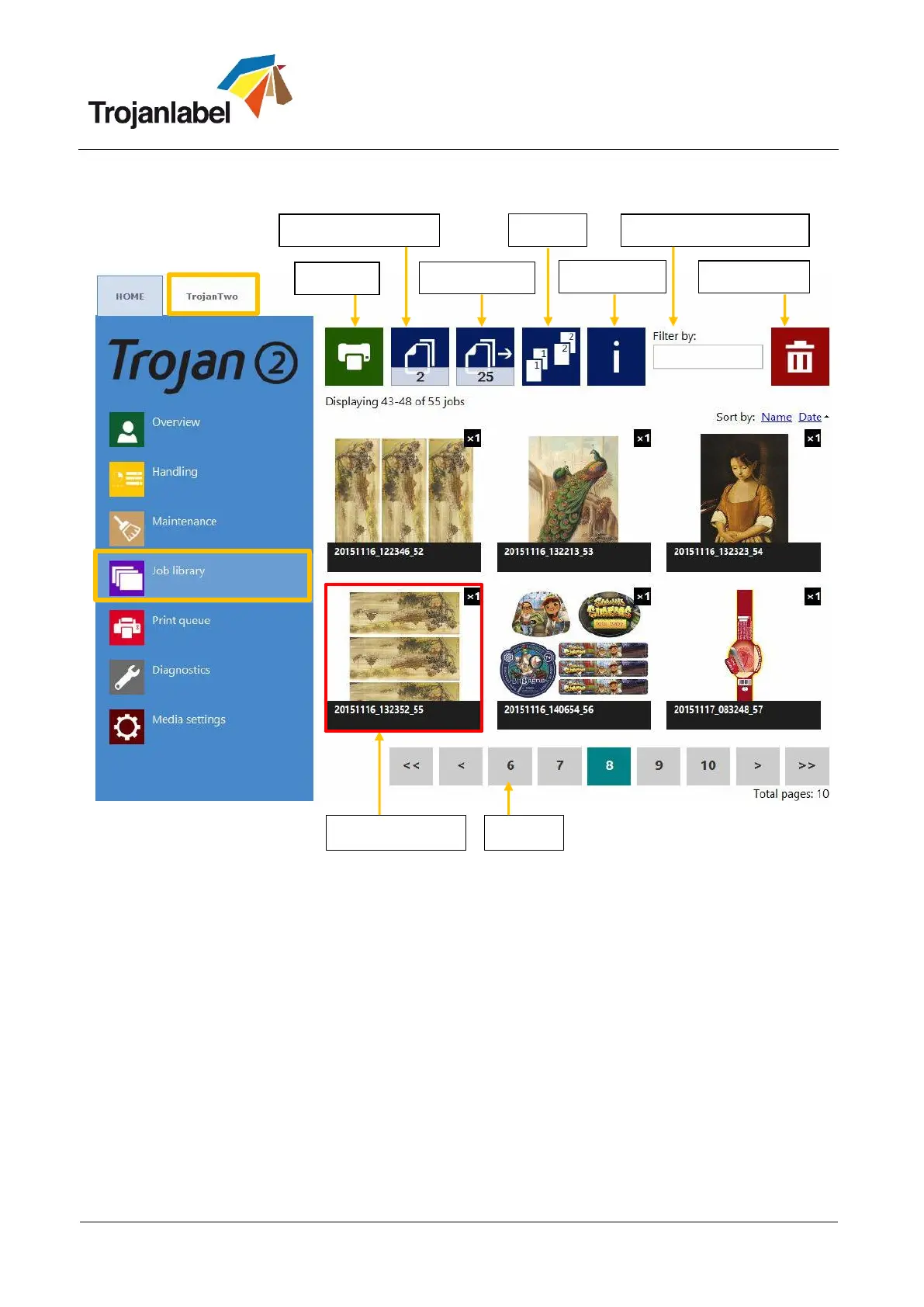 name. Only the drive space is the limit for storing jobs. Renaming can be done at information