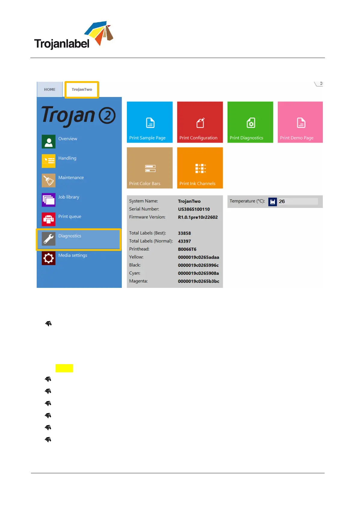 Diagnostics page: Containing system information (A4 size).