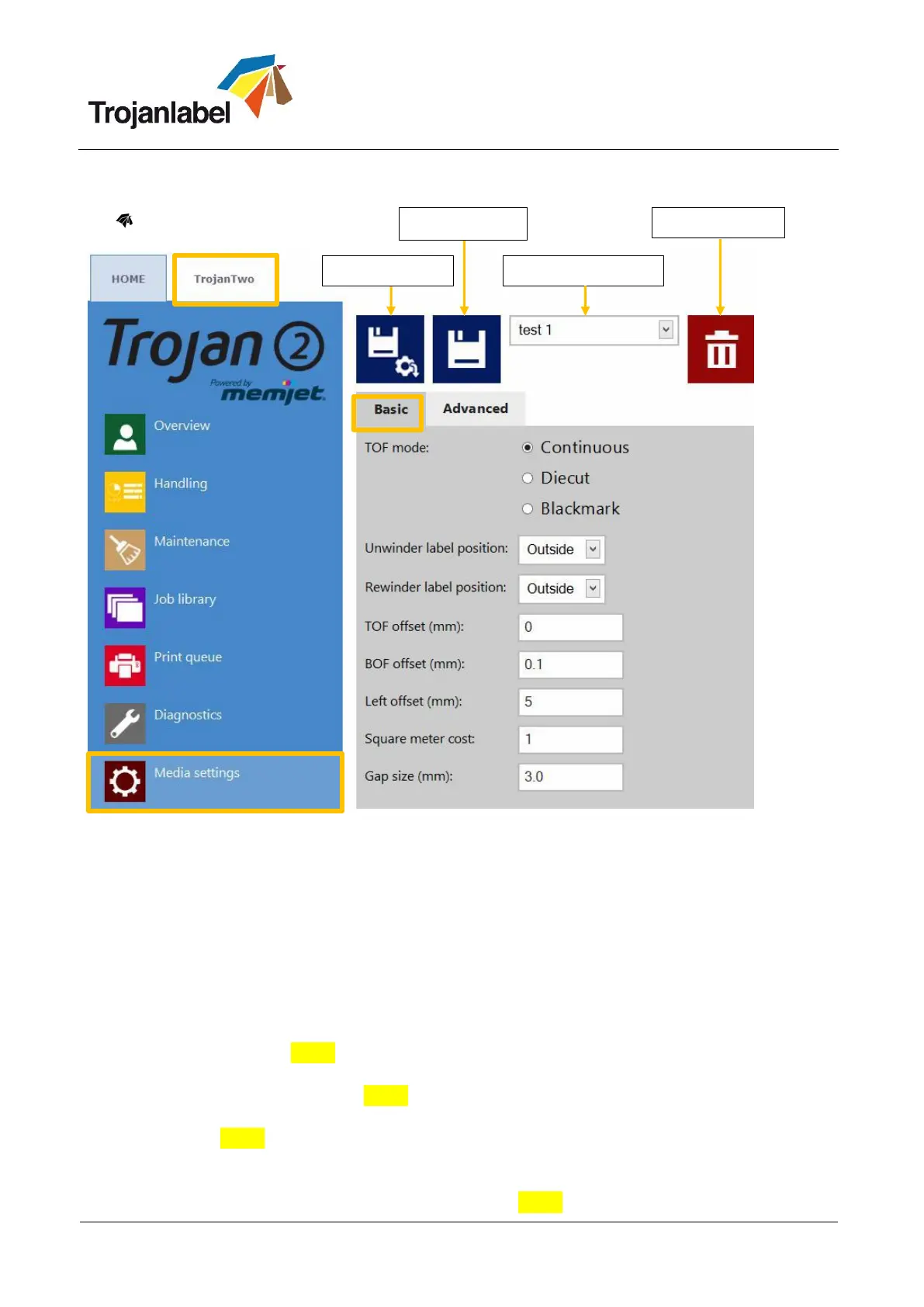 TOF offset (mm): Top Of From (top of label) can be +/- depending on moving the top of the image
