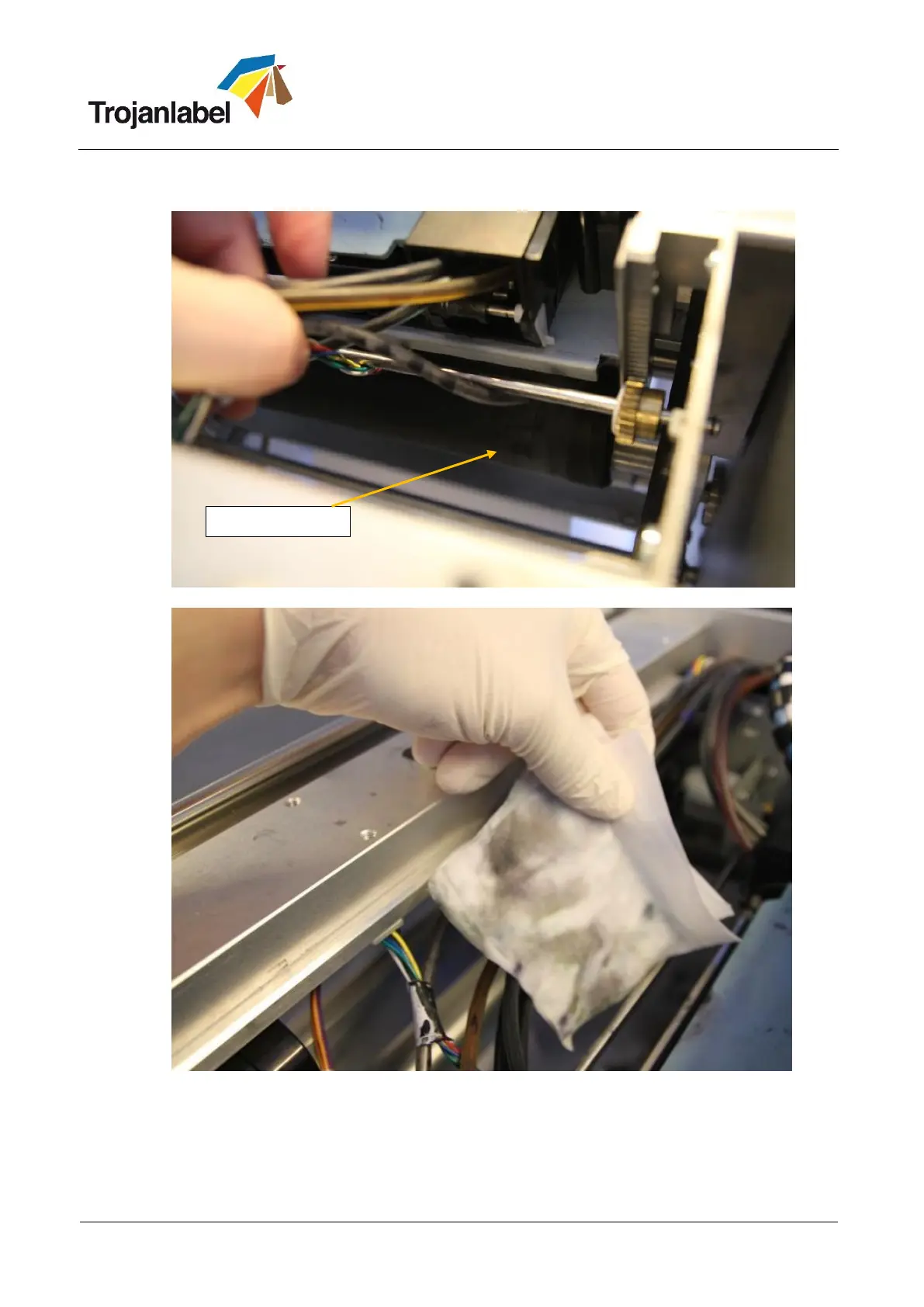 3. Wiping dust and debris off from NIP roller using lint free cloth and distilled water