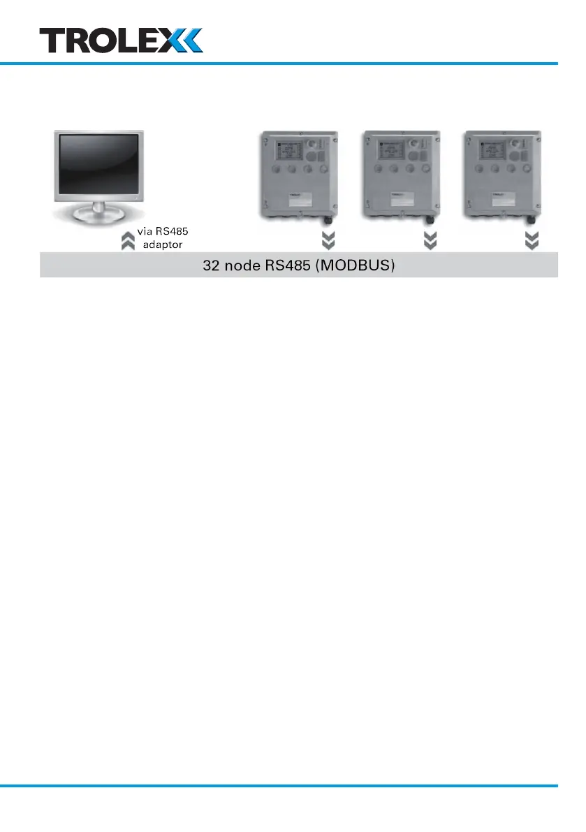 The datacomms output is RS485 standard supporting Modbus protocol.