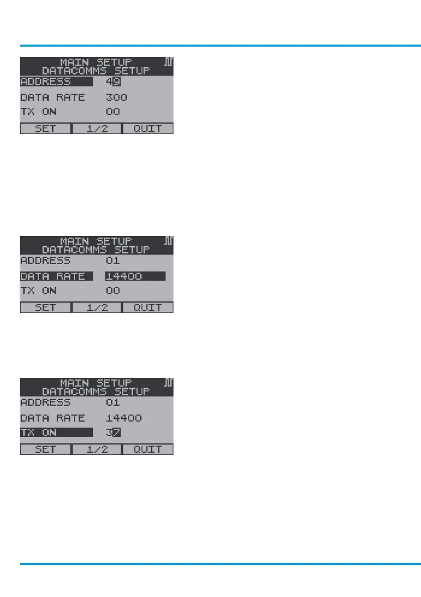 From the Datacomms Setup Menu, use the