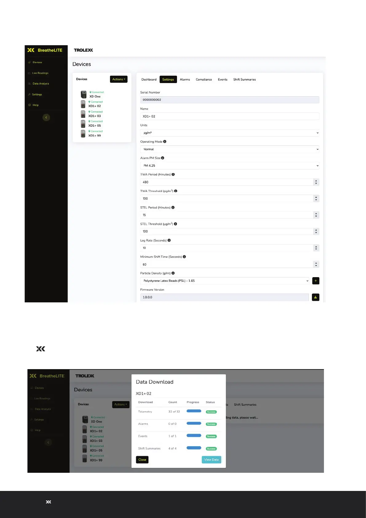 review and analysis as required via the BreatheLITE application as highlighted below.