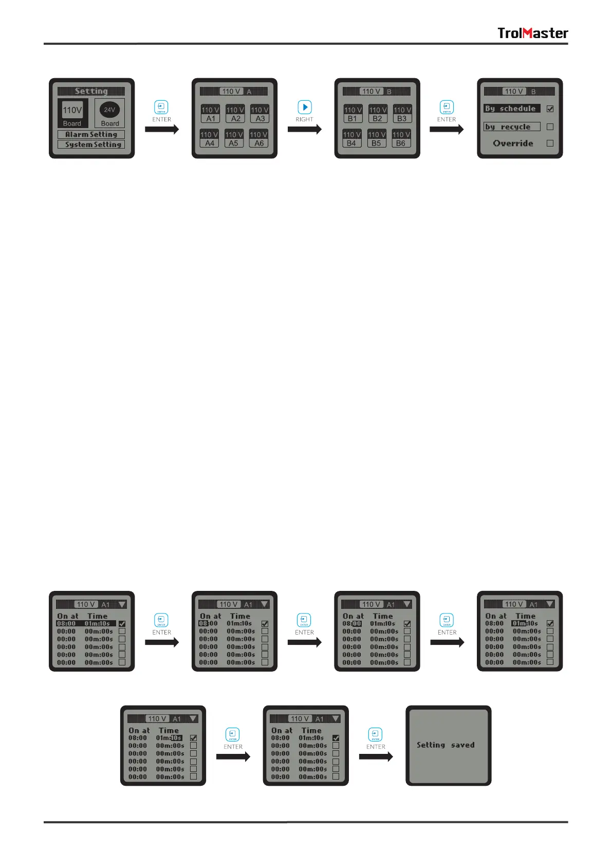 SETTING Page 110V Control Board A 110V Control Board B 110V B Setting Page