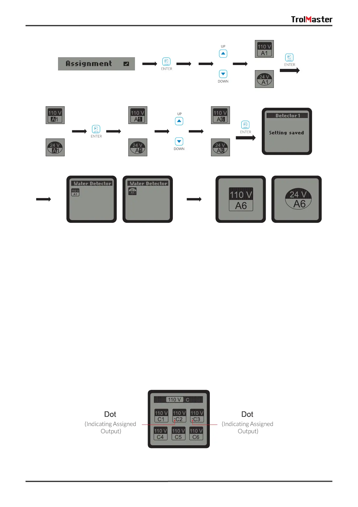 One Water Detector can be assigned to onlyone 24V or 110V output. One Aqua-X Controller can connect