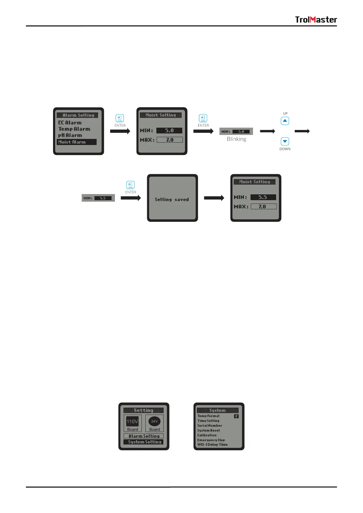 When the Moist Alarm is selected, press the Enter button to enter the Moist Alarm setting page. The LCD