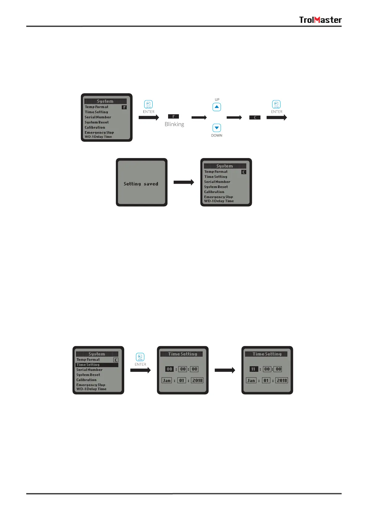 highlighted and blinking. Press UP or DOWN button to convert the temperature format between F and C.