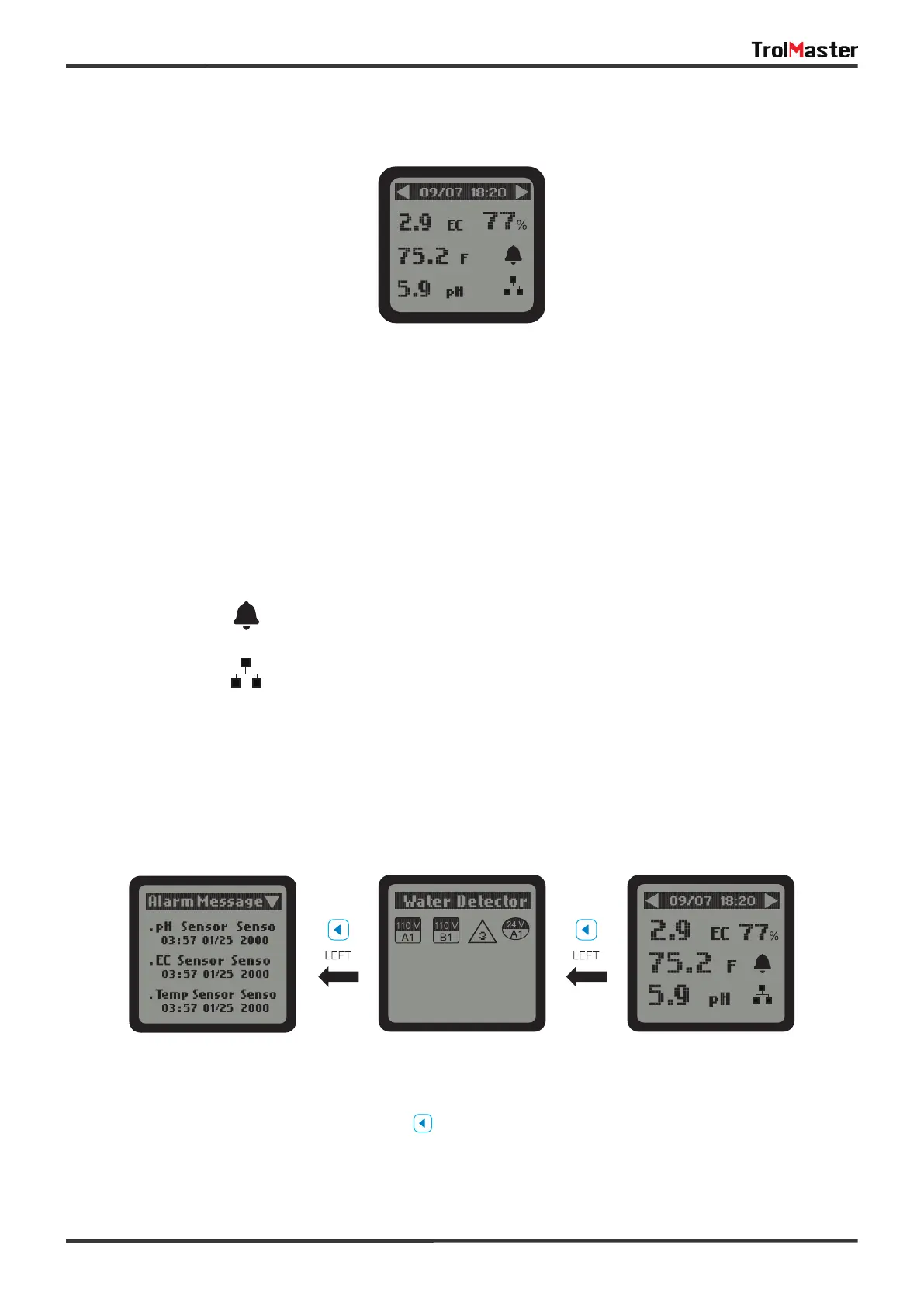 Alarm Message Page Water Detector Page Main Menu Page