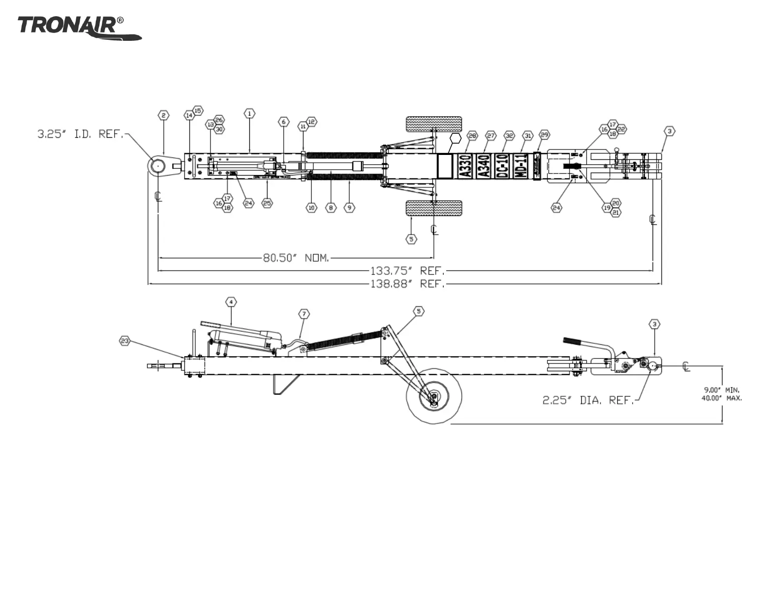 Airbus A330, A340, A350, McDonnell Douglas DC-10, MD-11 Towbar