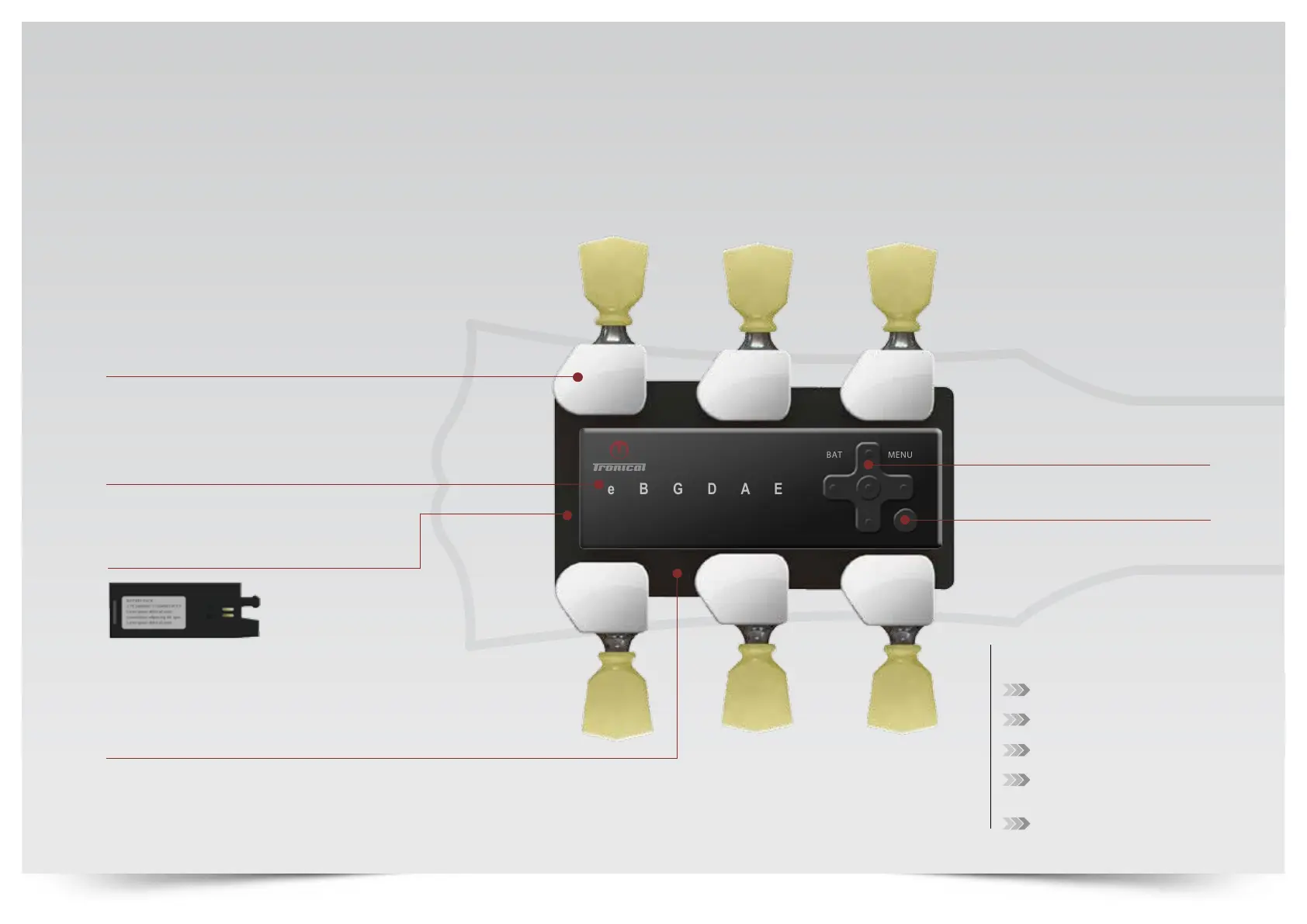 6 STRING LEDS, 1 MENU LED, 1 CHARGE LEVEL LED
