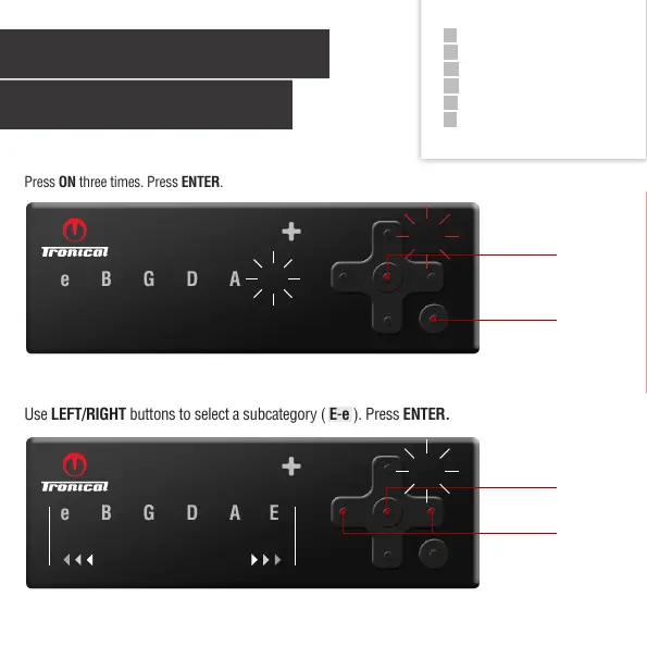 Use LEFT/RIGHT buttons to select a subcategory ( E-e ). Press ENTER.