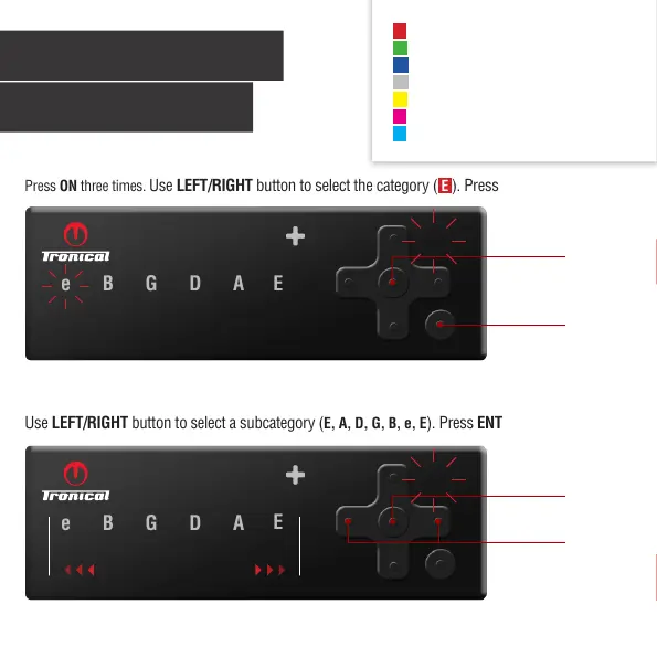 Use LEFT/RIGHT button to select a subcategory (E, A, D, G, B, e, E). Press ENTER.