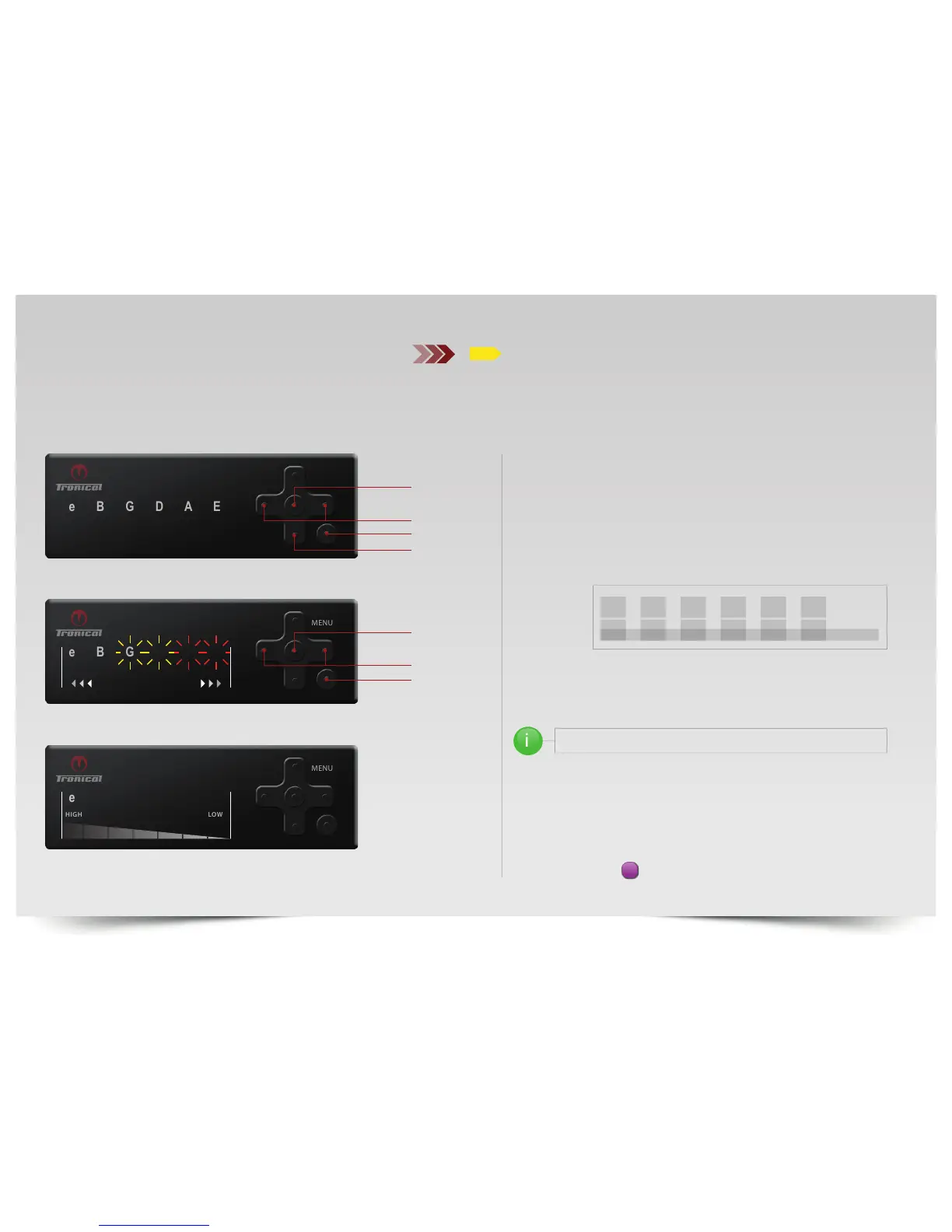 Pitch Window the corresponding LED turns purple. If at least one string