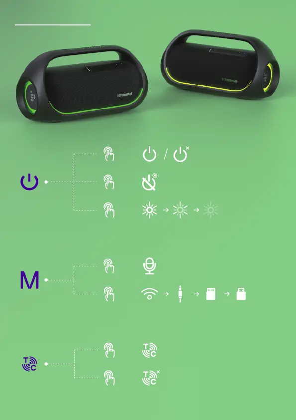 Switch Music Playing Modes: Press once to switch among Bluetooth,