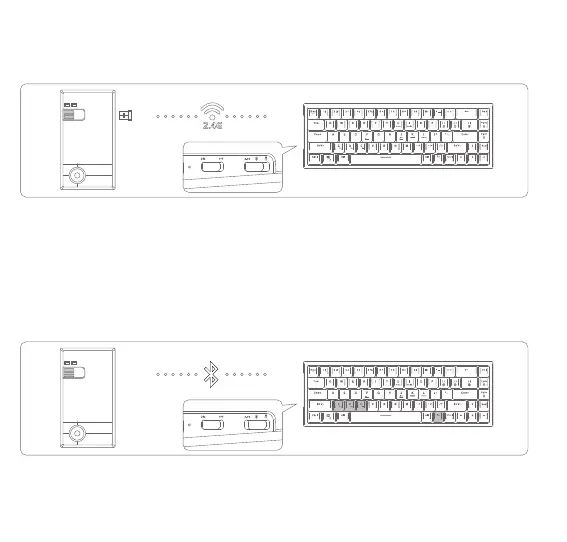 de tres posiciones en la parte inferior del teclado al modo 2.4G (la luz indicadora se mantendrá en