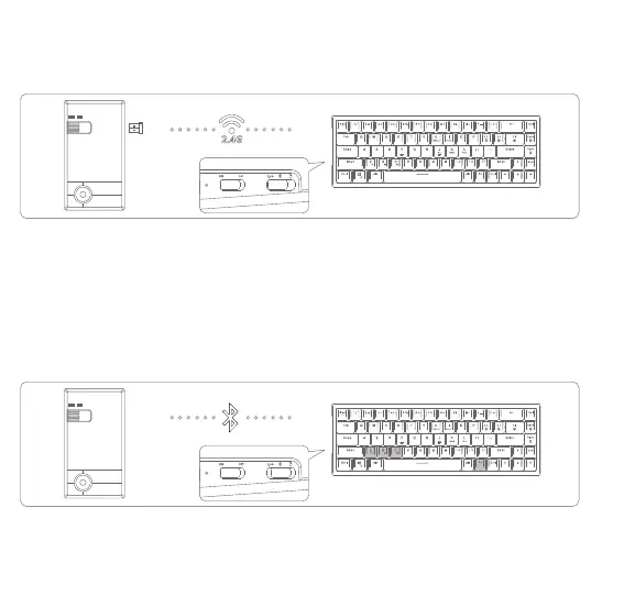 trois étages sur le côté inférieur du clavier en mode 2.4G (le voyant lumineux restera vert pendant