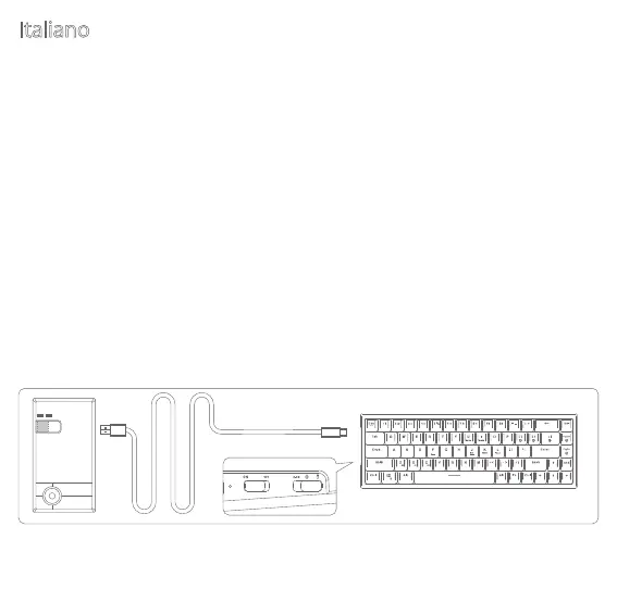 2.Portare l'interruttore a tre posizioni sul lato inferiore della tastiera in modalità cablata (l'indicatore