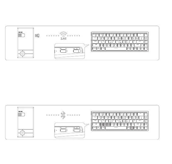 dreistufigen Schalter auf der Unterseite der Tastatur in den 2,4-G-Modus (die Anzeigelampe leuchtet