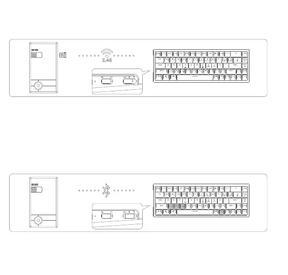the lower side of the keyboard to 2.4G mode (The indicator light will keep on green for 10 seconds).