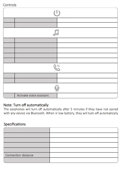 Tronsmart Onyx Ace - User Controls and Specifications; Touch Control Functions; Technical Specifications