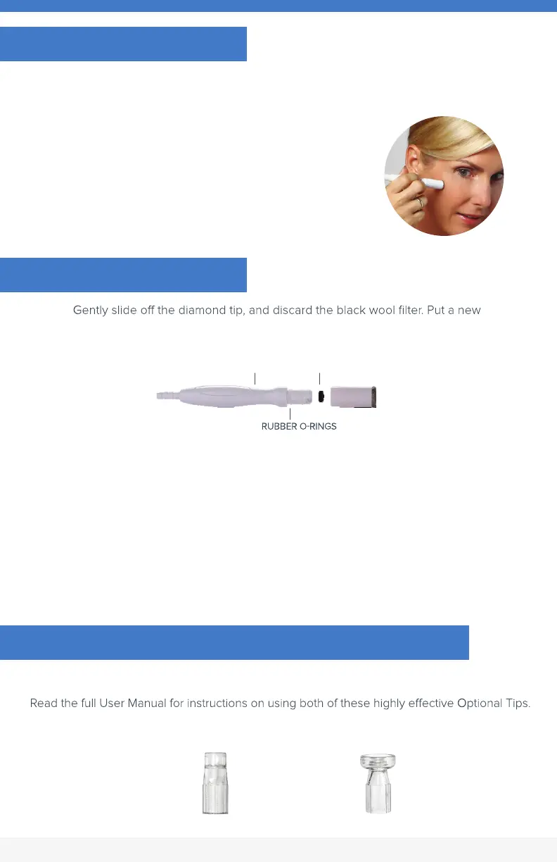 the skin. Using short, even strokes, move the diamond tip across your skin.