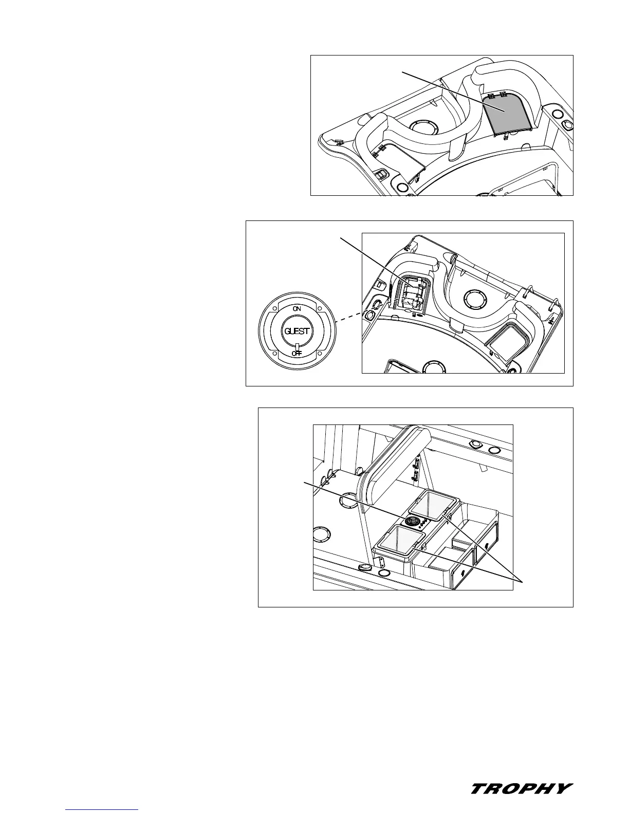 1703 & 1903: Located under the port transom seat.