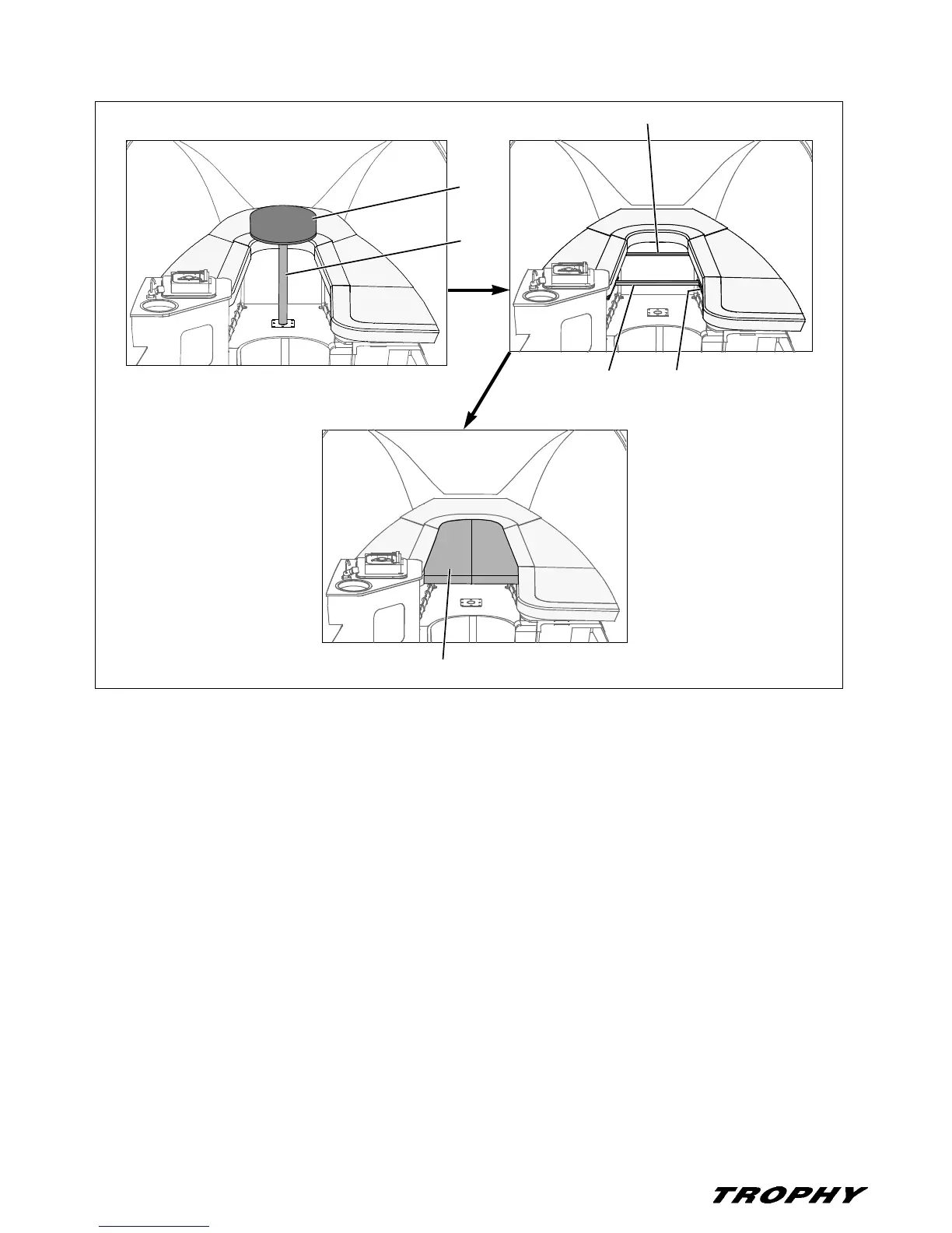 2. Insert the aluminium support bars (C), that are stored on the back of the port cushion, so that they fit securely on