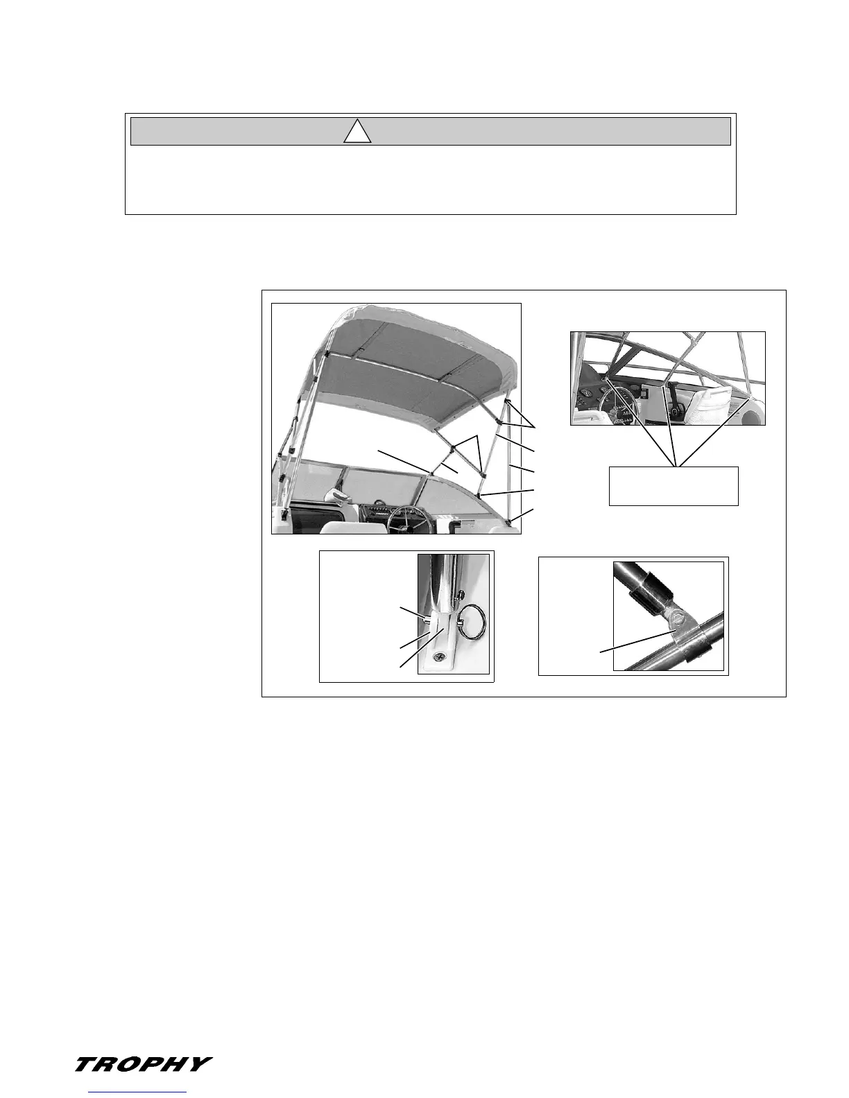 • Take down and securely stow the canvas top before transporting your boat by road.