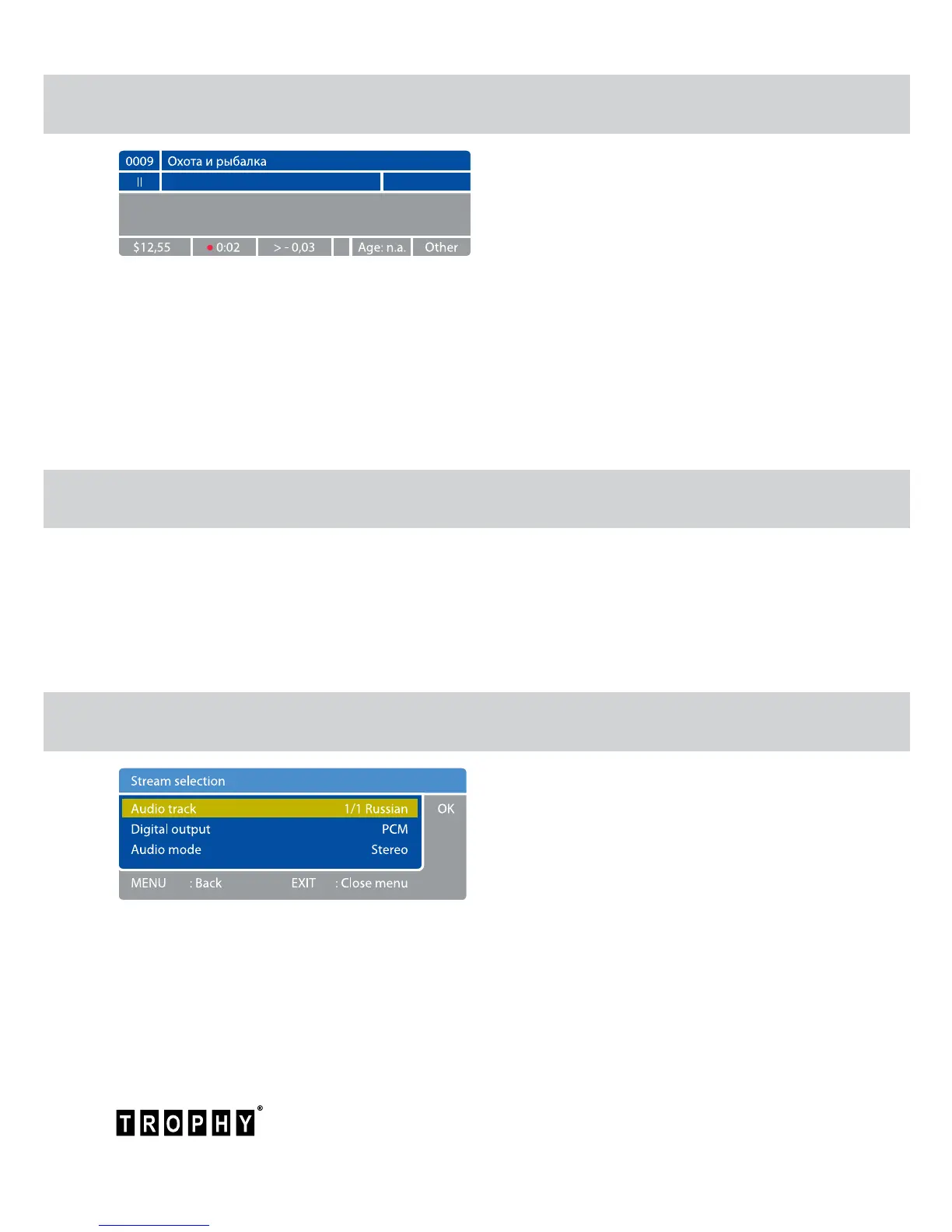 Press AUDIO button to enter the Stream Selection menu.
