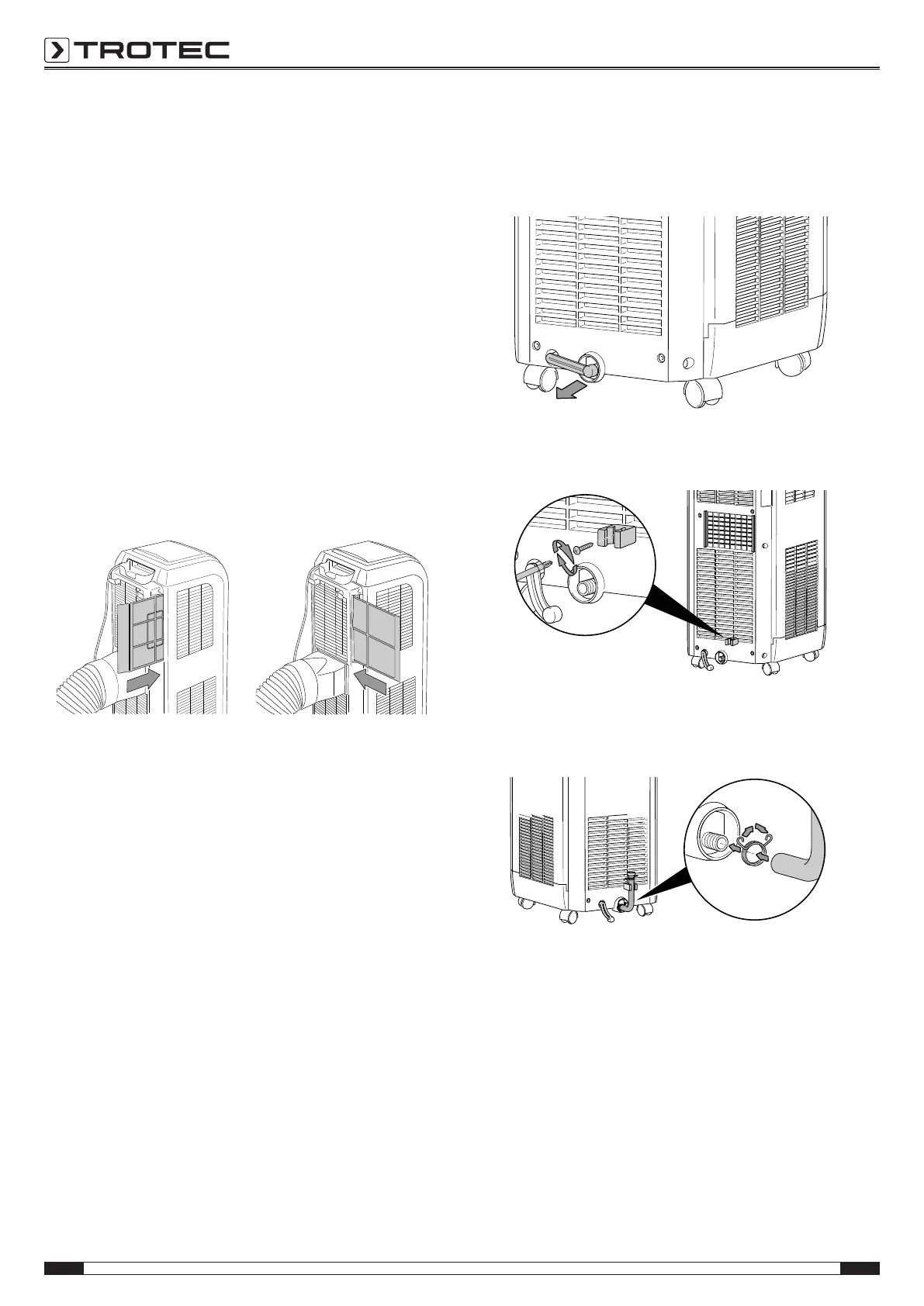 • Keep air inlets and outlets as well as the exhaust air hose