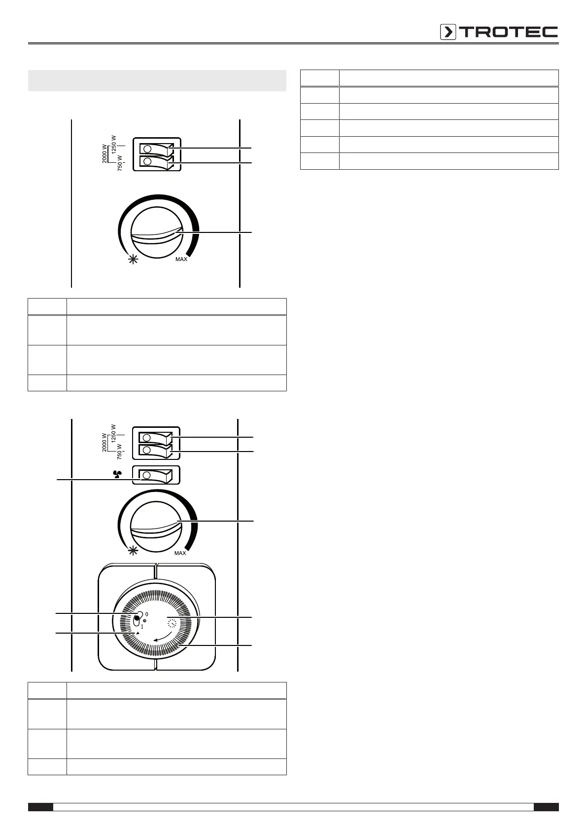 2. Set the flip switch (6, 7) to On to select the desired heating