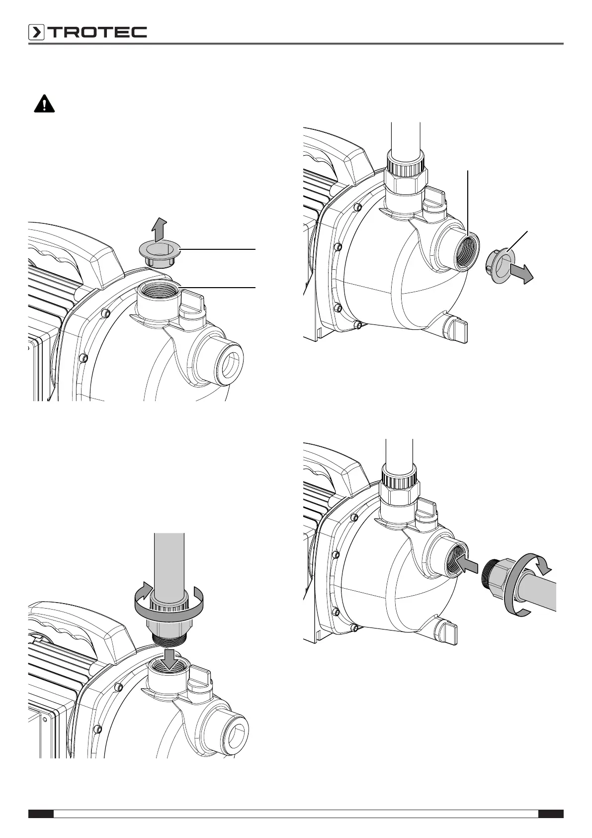 Keep the protective cap of the suction connection so