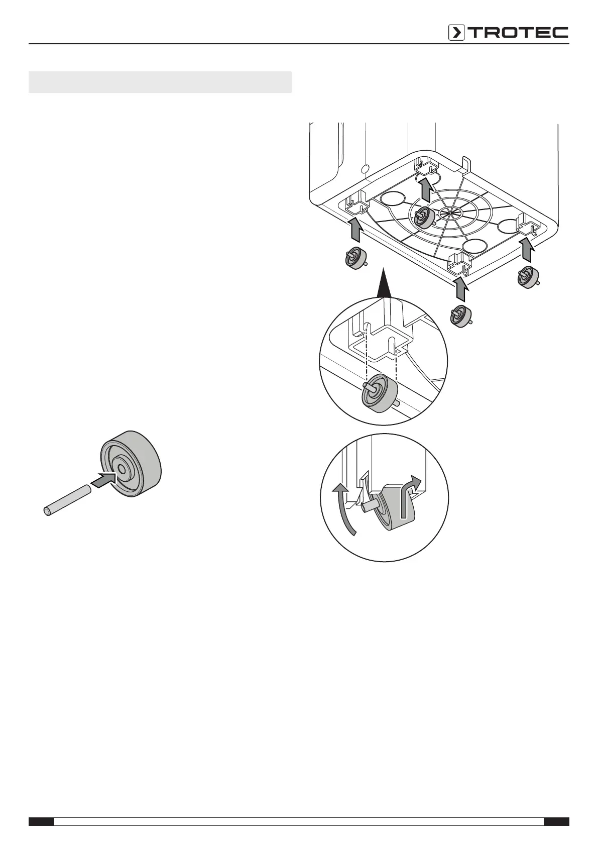 2. Tilt the device. Put a wheel into the mounts at the bottom of