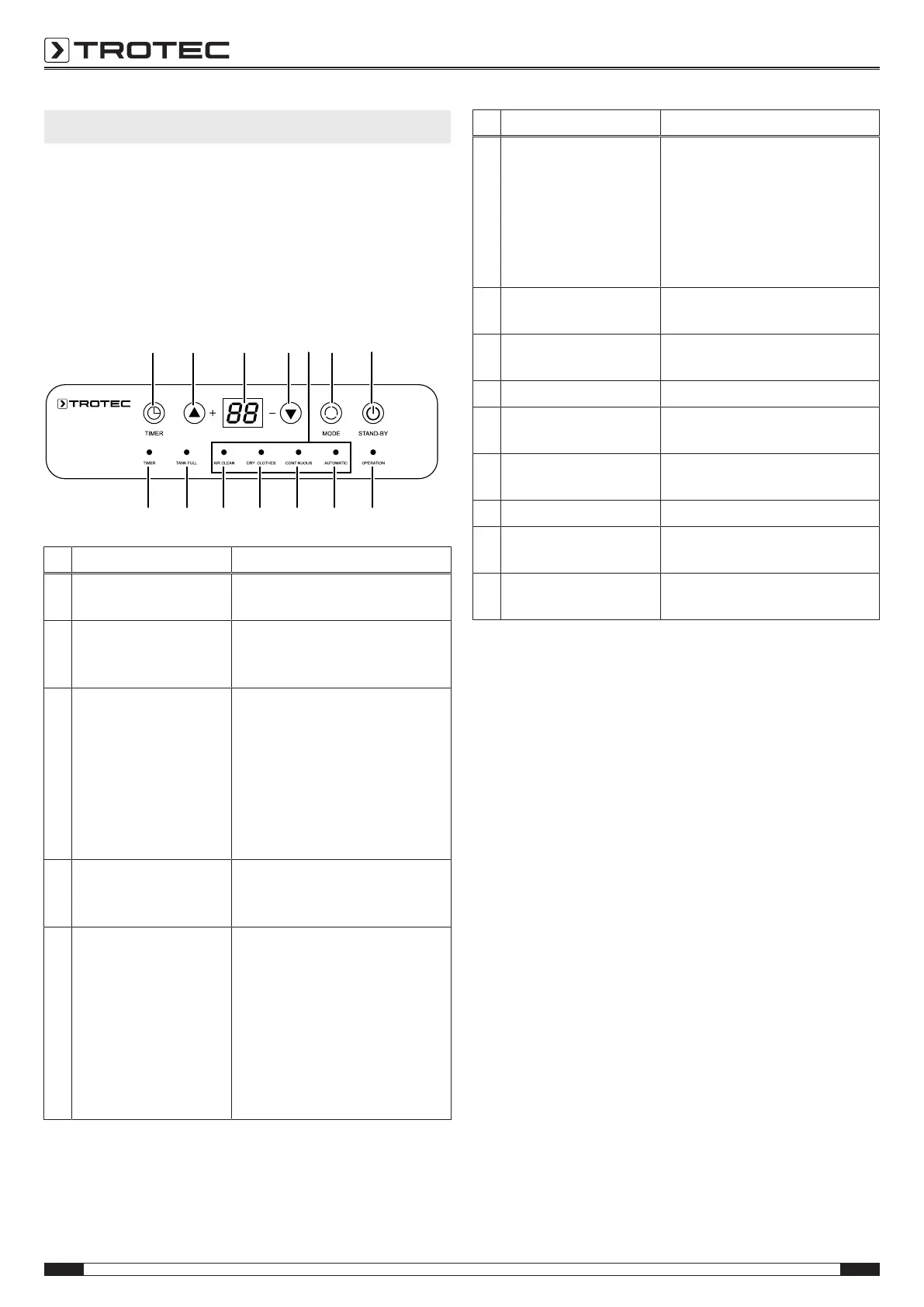 14 Minus arrow button Setting the relative room humidity