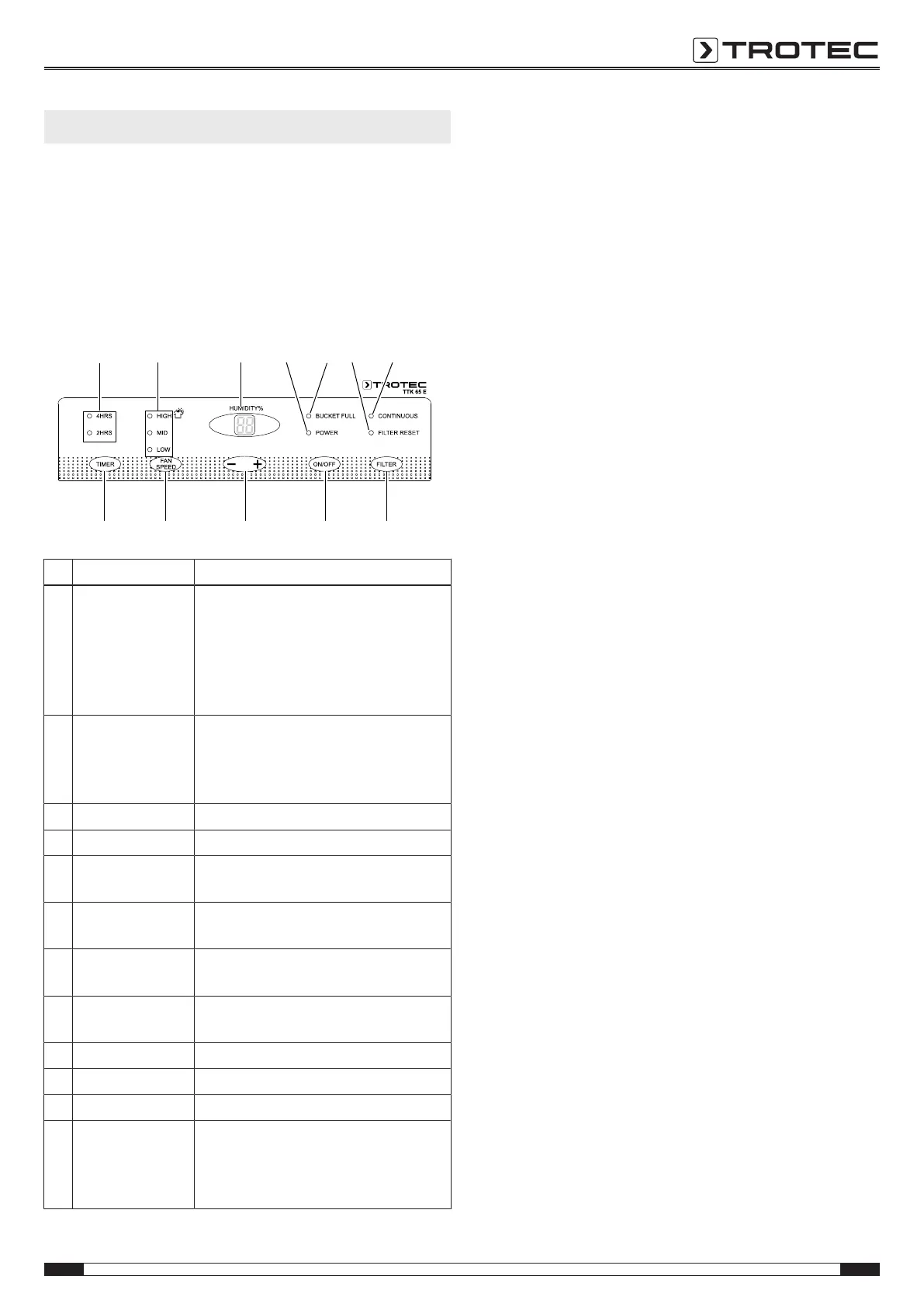 18 +/-button For setting the desired humidity value