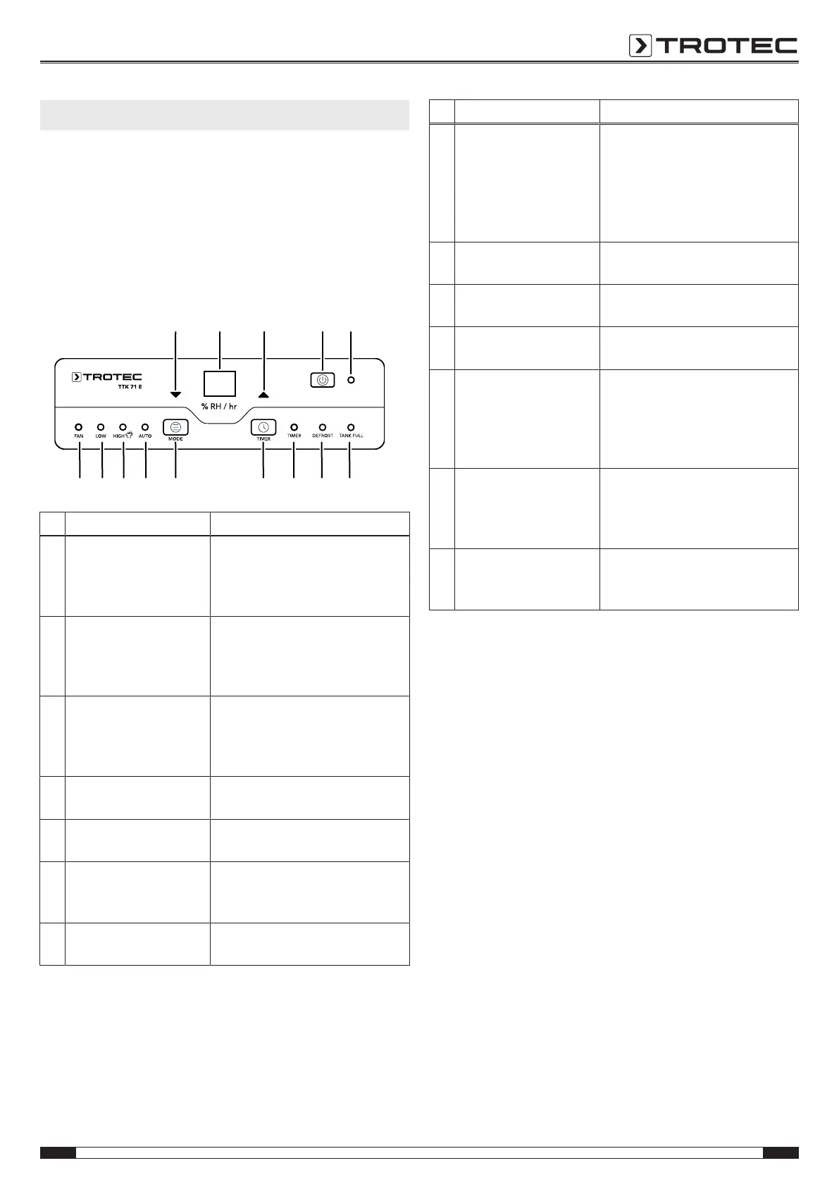 button(9) to set the desired relative room humidity. Setting