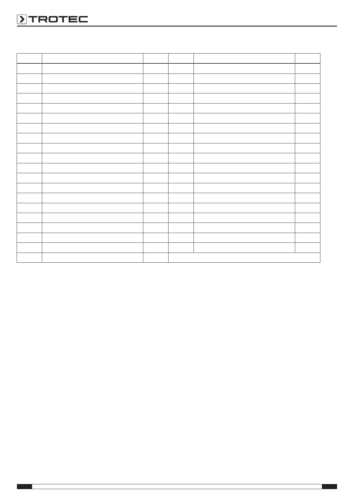 Spare parts list