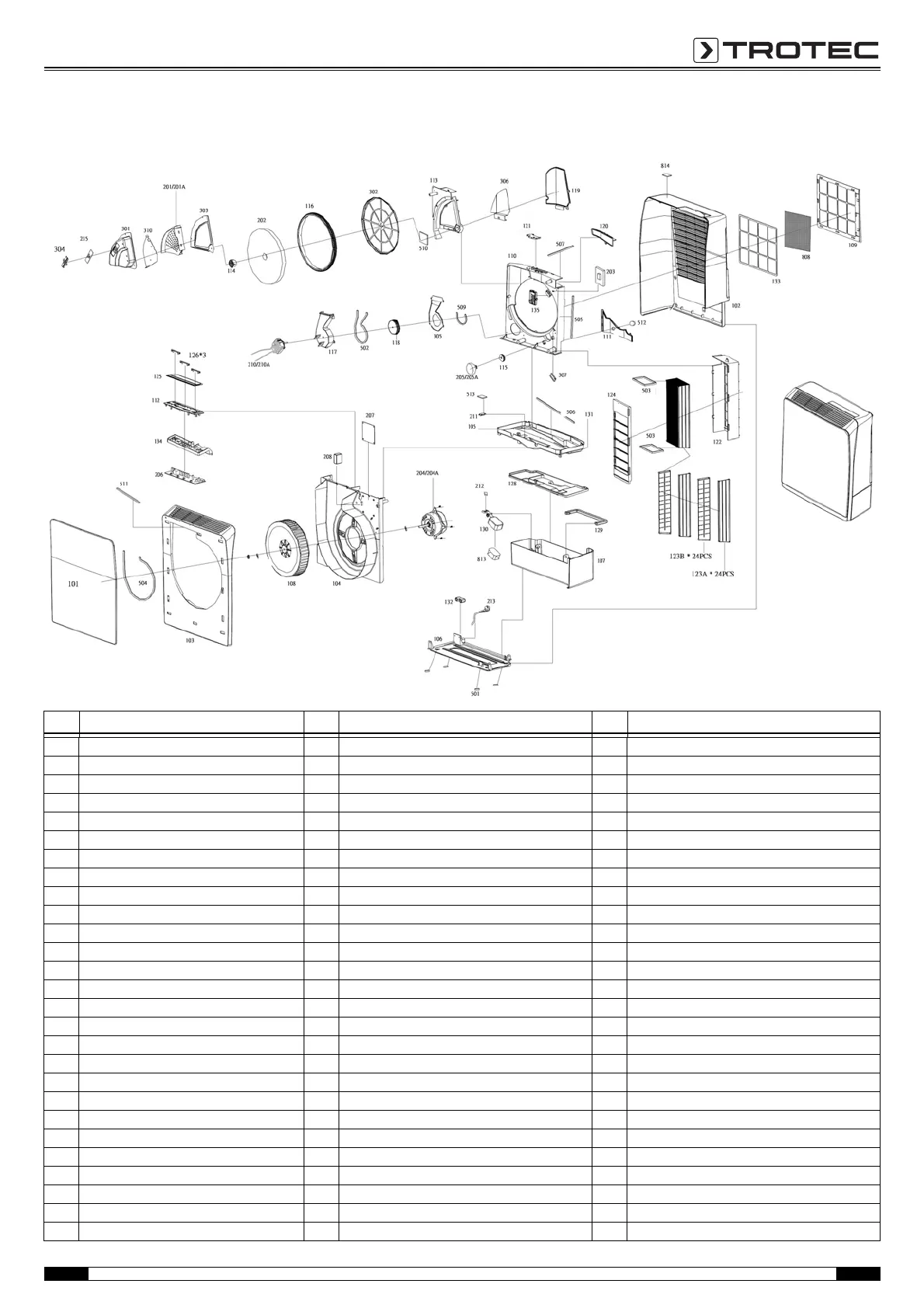 110 main fixture 202 dehumidifying wheel 509 seal foam for s.wind funnel & main fixture