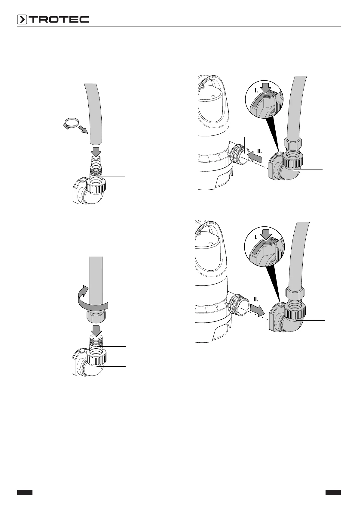 2. Push the hose (inner diameter 25mm or 38mm) onto the