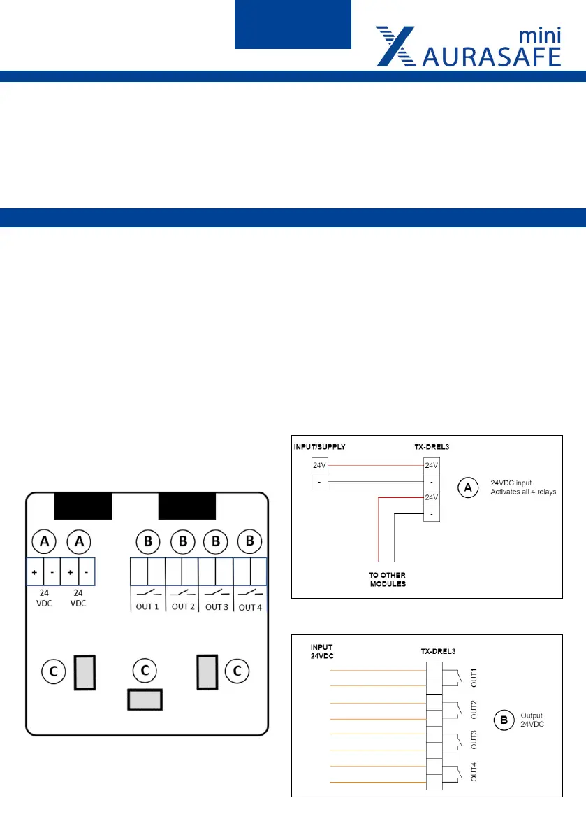 DK: TX-DREL3 Relæmodulet anvendes i decentrale ventilationsanlæg til at omfordele styreenhedens stopsignal, således at