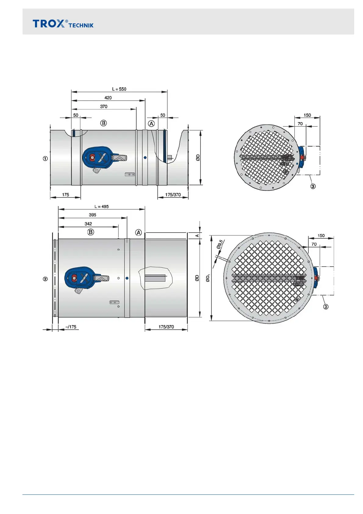 2.4 FKR-EU with fusible link and cover grille on both sides as an upstream shutter
