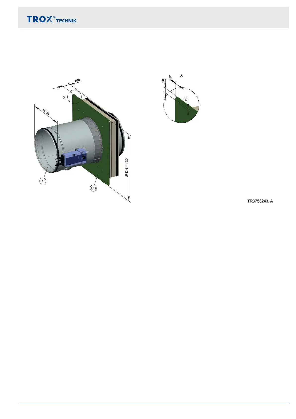 The installation kit TQ is an integral component of the fire damper and must be ordered together with the damper.