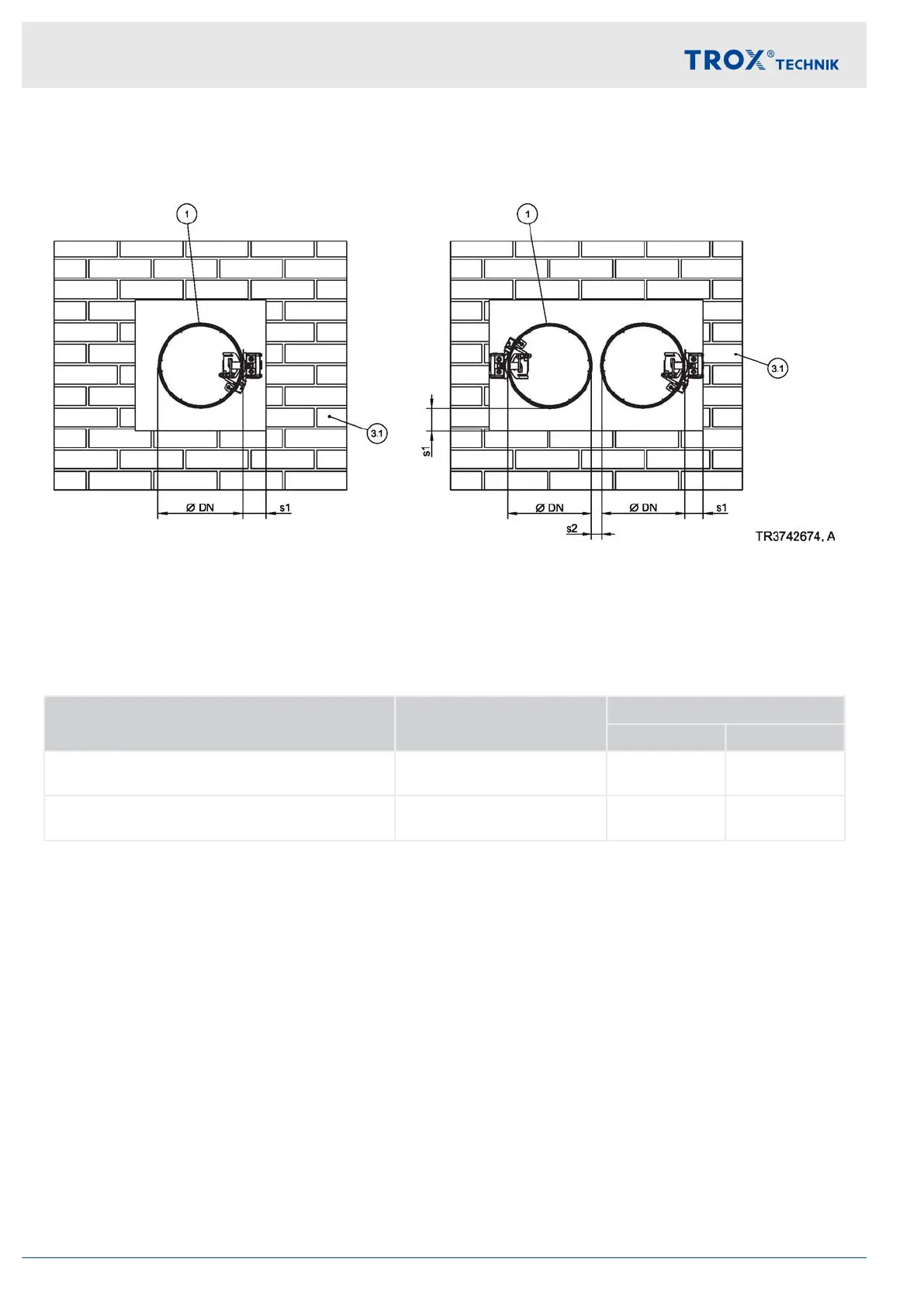 s2 Distance between the fire dampers