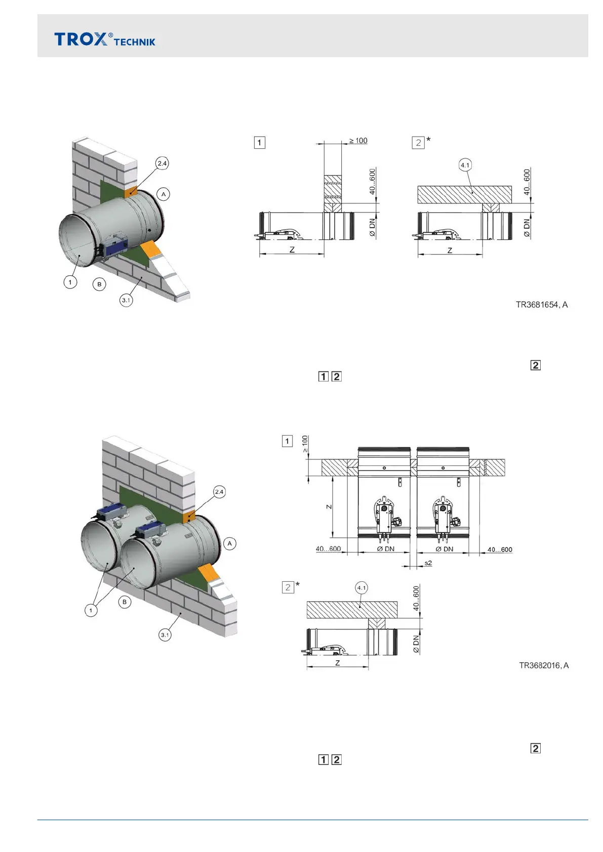 Fig. 29: Dry mortarless installation into a solid wall, with a fire batt, flange to flange, illustration shows side by side