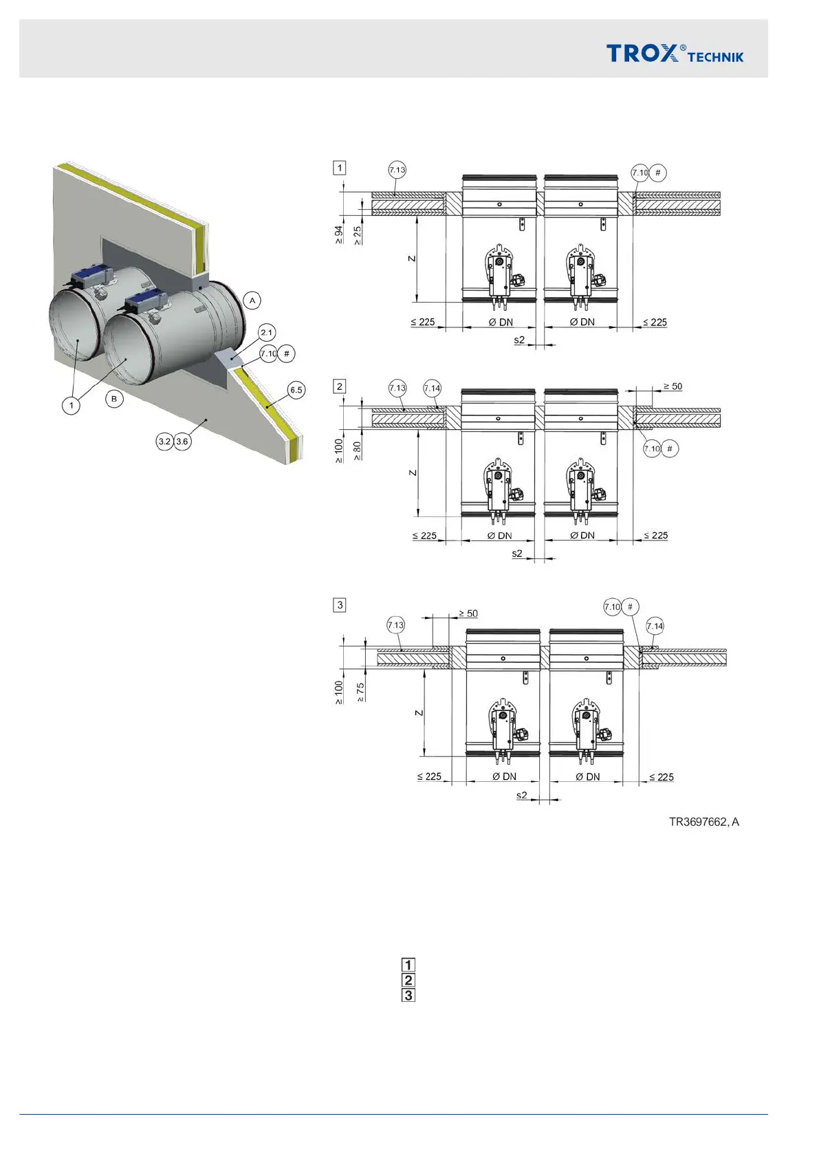 installation (applies also to installation of dampers on top of each other)